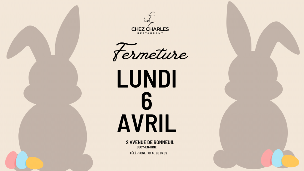 Votre restaurant Chez Charles est ouvert le lundi de 12h00 à 14h30,